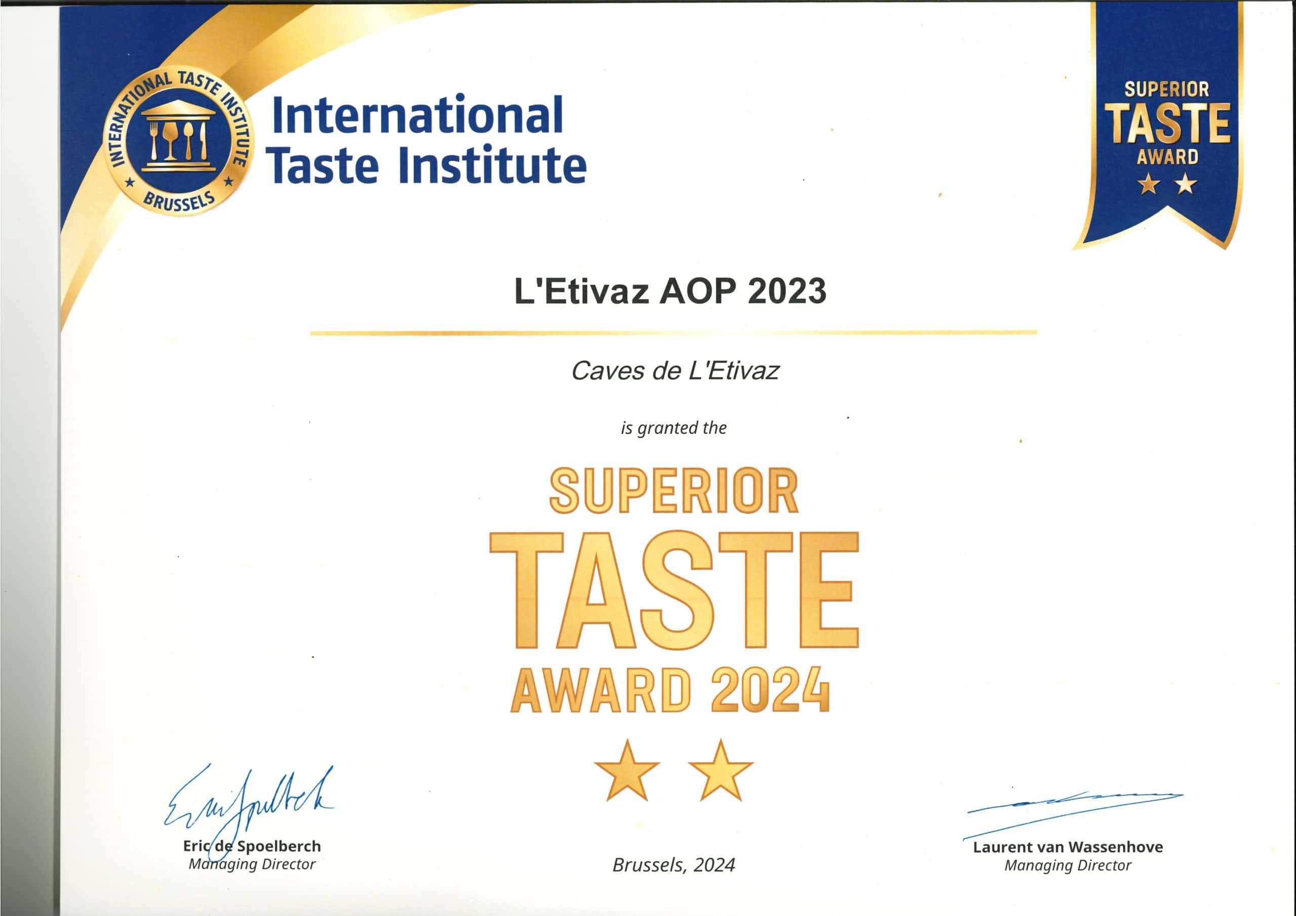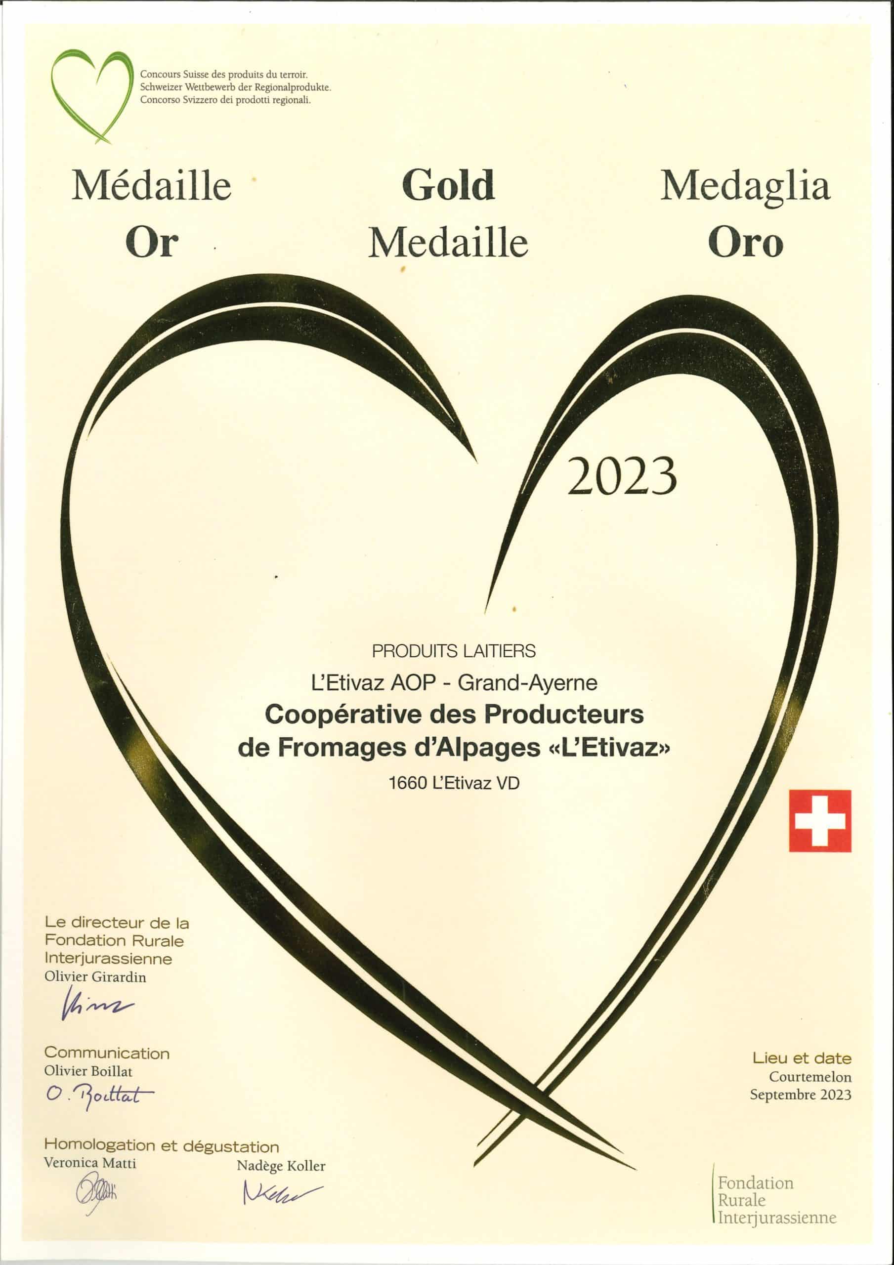 Prix & Distinctions Nos distinctions en images Au fil des années, L’Étivaz AOP a reçu de nombreuses distinctions lors de concours nationaux et internationaux.Ces récompenses illustrent le savoir-faire des producteurs d’alpage et la qualité unique de ce fromage fabriqué au feu de bois.